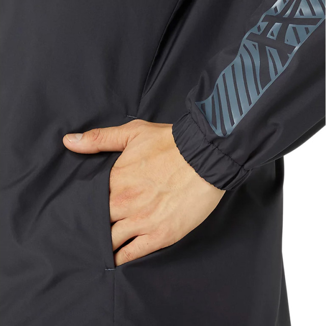 左腕にASICS STRIPESグラフィック入り。