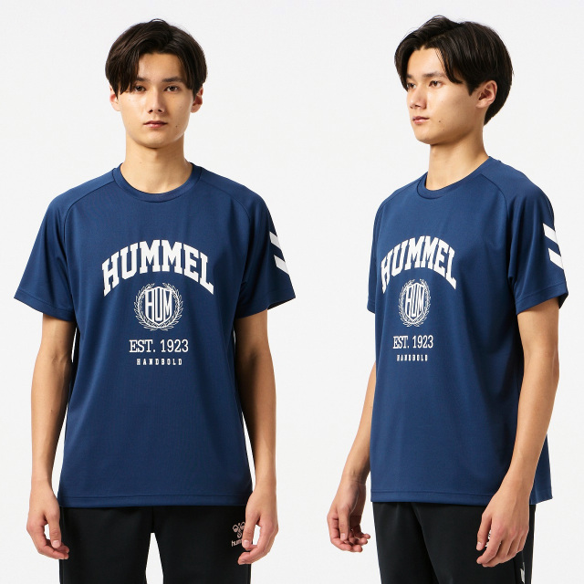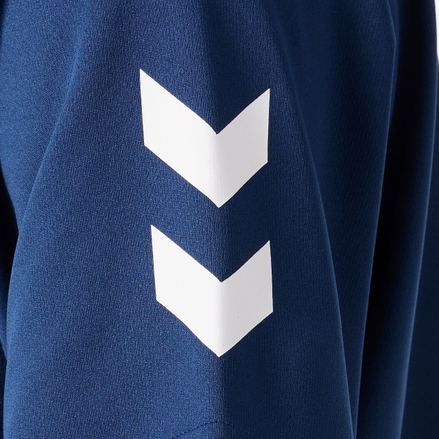 フロントにはヒュンメルの文字を、襟後ろにはヒュンメルロゴを、袖にはシェブロンを表現しました。