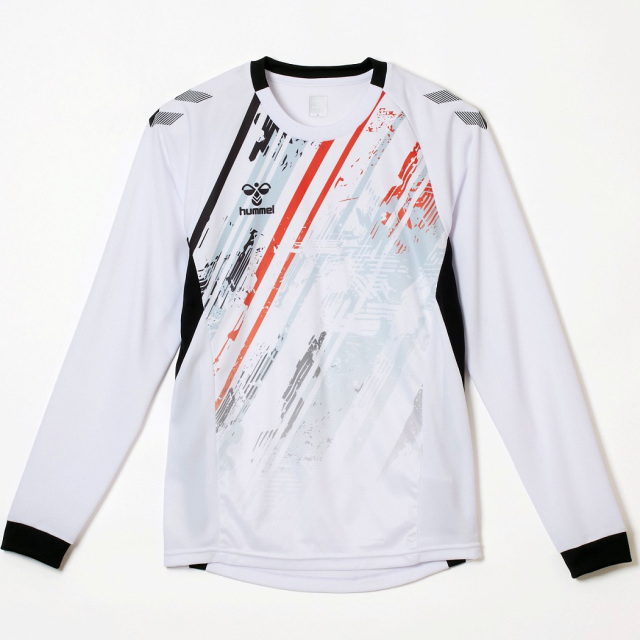 日本代表着用予定アイテムのプラクティスロングスリーブシャツ。ハンドボール専用パターンを採用し、ハンドボールの動きに特化。