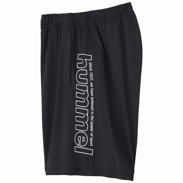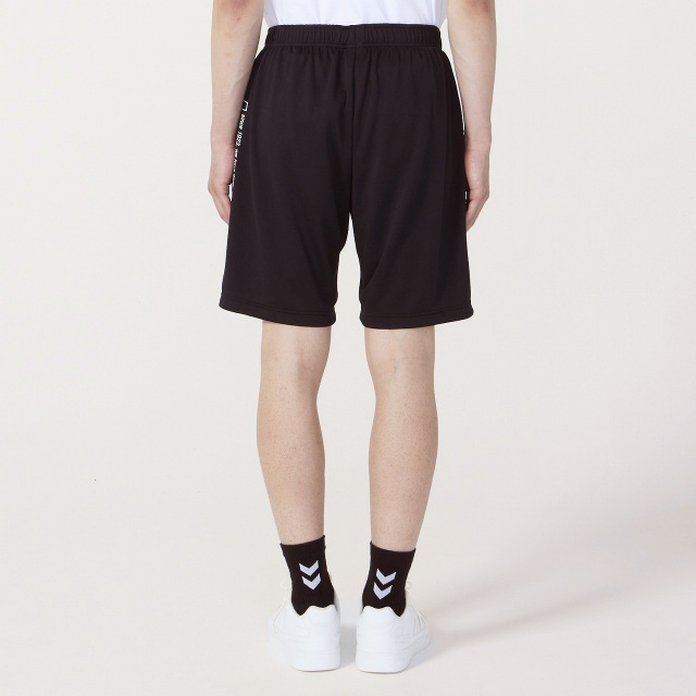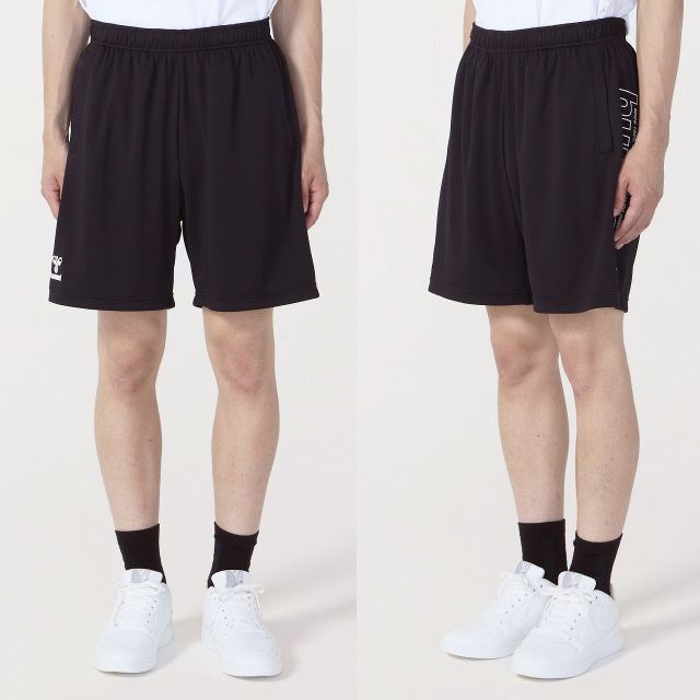 左脇にグラフィックを配置したシンプルで汎用性の高い膝上丈のハーフパンツ。
