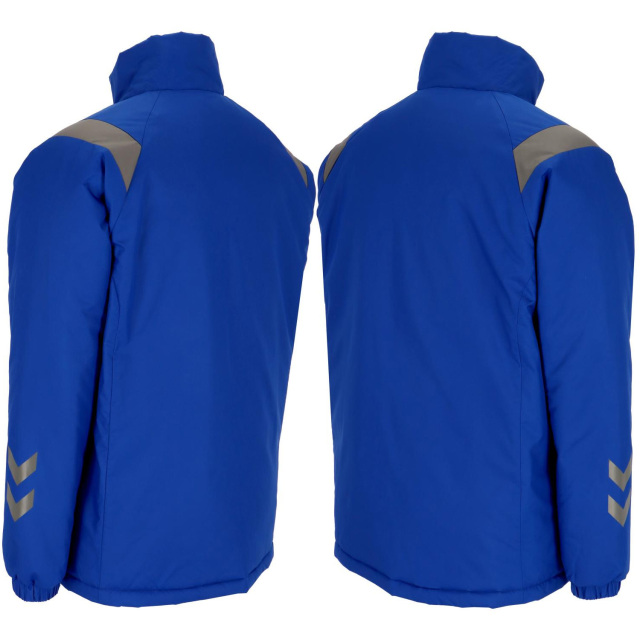 ベーシックデザインのチーム対応中綿ウォーマージャケット。