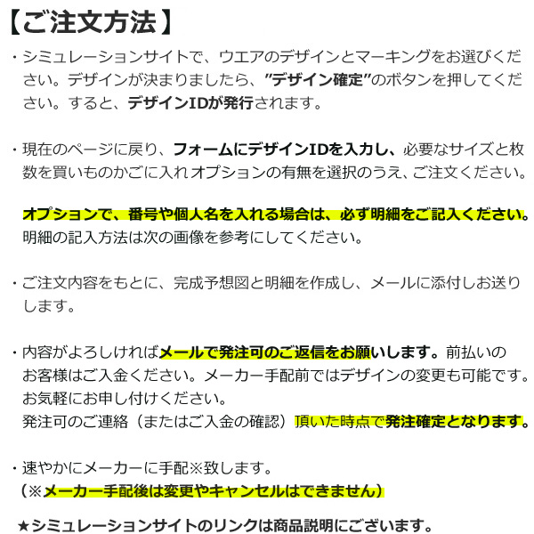 チームマーク、個人ネーム、番号を入れる事が出来ます。