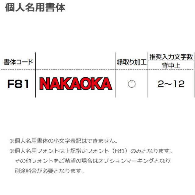 ●記入例2(個人名ありの場合):サイズ/枚数(背番号:個人名)